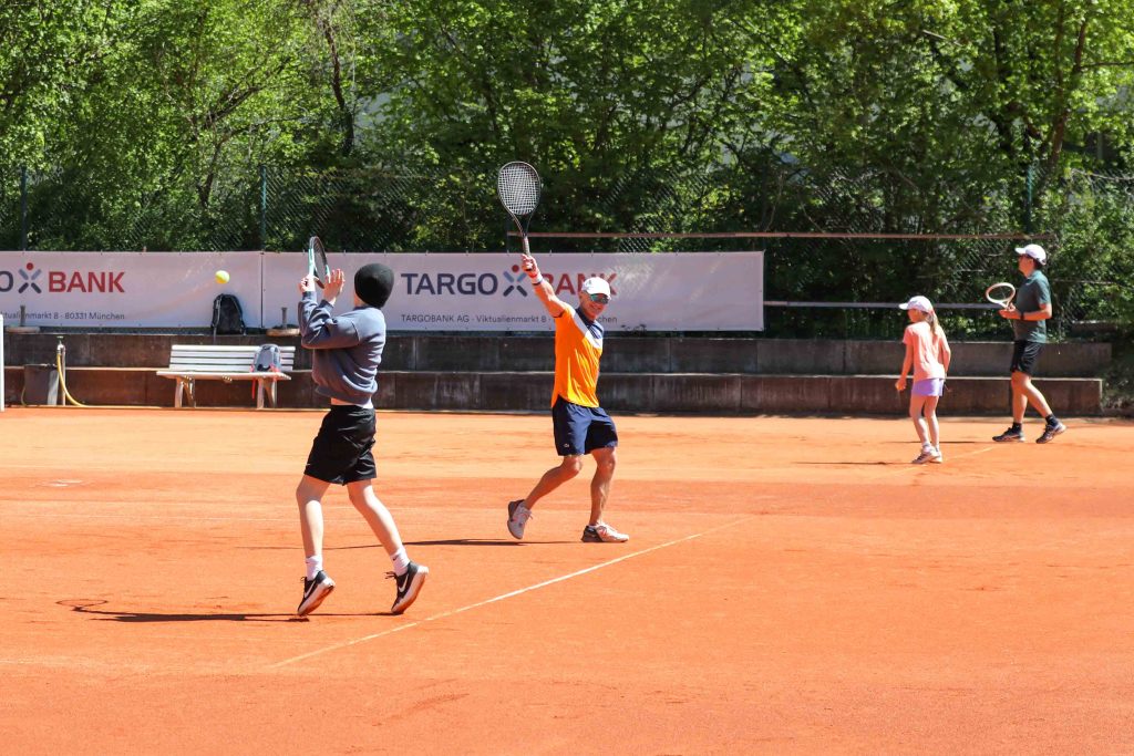 Damit wir auf 5 Plätzen das Turnier austragen konnten hat die Turnierleitung (Luci + Thomas) kurzfristig mitgespielt. Wie immer haben sich einige „Wiederholungstäter“, ein paar „Neulinge“ und auch wieder zahlreiche „Kids“ angemeldet, um bei dem Mixed-Turnier teilzunehmen. Es waren wieder diese neuen Begegnungen auf dem Platz, die dieses Event ausmachen… Mixed-Paarungen, die es sonst nicht geben würde und erste Erfahrungen für die Jüngsten mit erfahrenen Partner zu spielen.