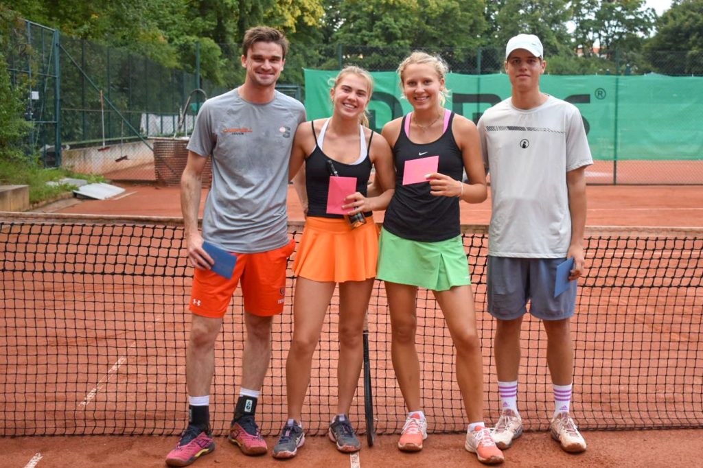 Nach zahlreichen Regenpausen und mit 5 Tagen Verspätung konnte am Donnerstag 31.7. endlich das Endspiel der Mixed-Clubmeisterschaft stattfinden. Im Finale trafen Mira Oggolter und Dustin Werner auf Romy Rohde und Valentin Berr. Die Youngsters hatten sich vorher in einem 24er Feld durchgesetzt. Allerdings, wie sollte es anders sein, nach nur 5 gespielten Spielen gab es den nächsten Regenguss und die Plätze standen wieder einmal unter Wasser.